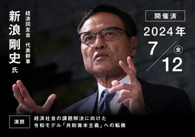 「時代の転換点」である今、どのように経済を成長させるか。そこに「共助資本主義」の提案をされる。これは、民間が主体となって、大胆に経済、社会構造を作り変えるということだ。
